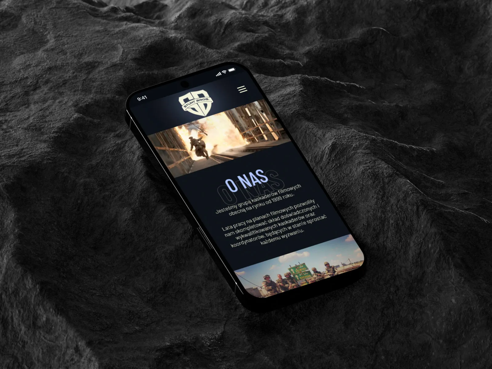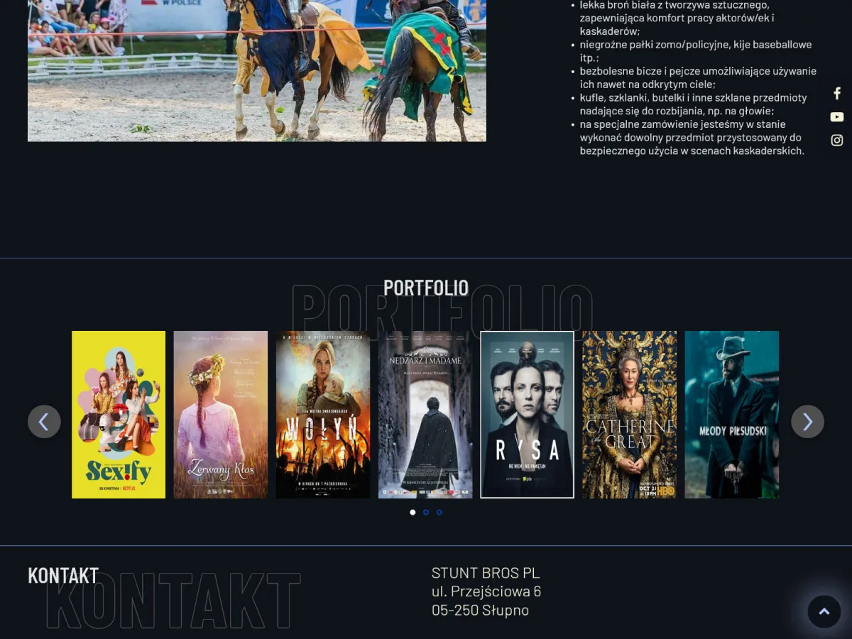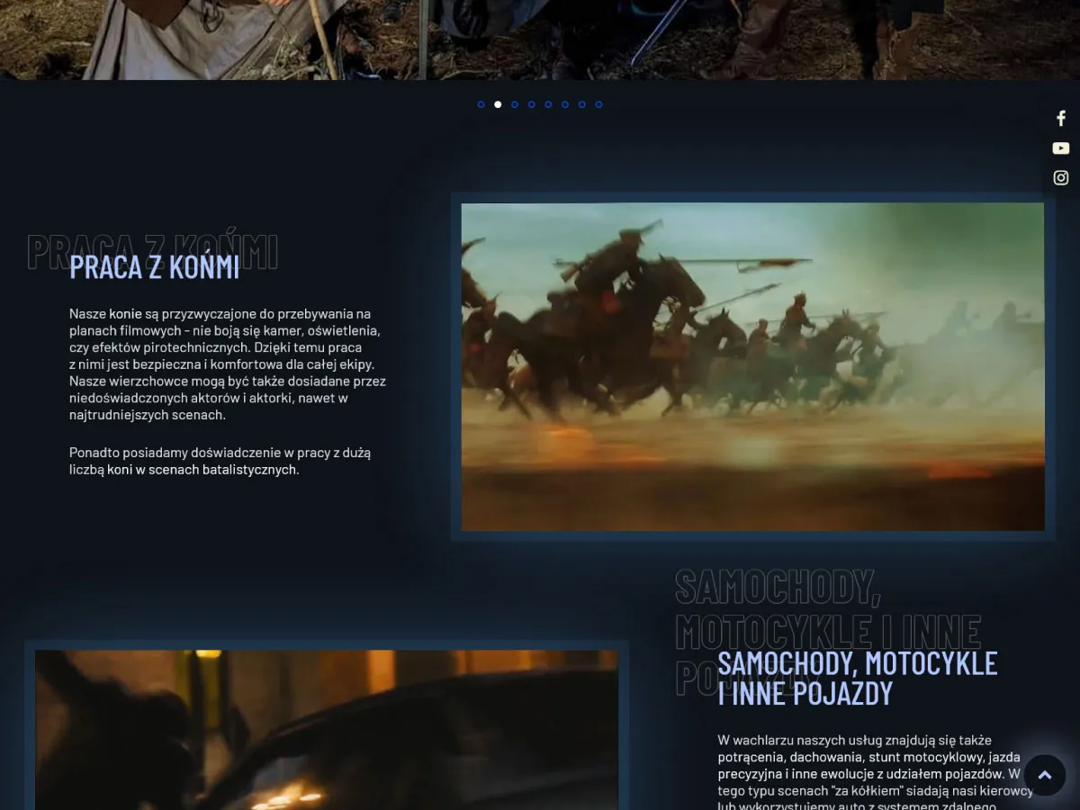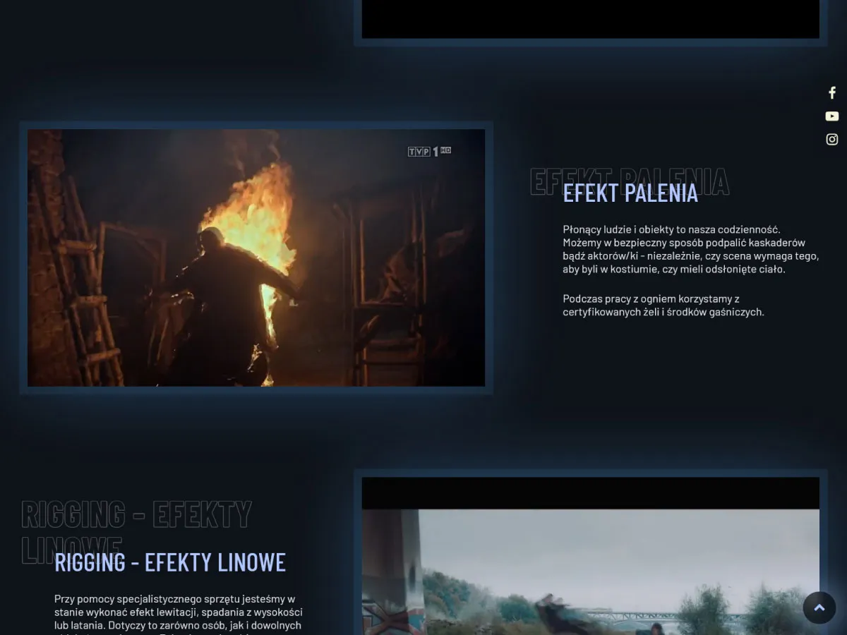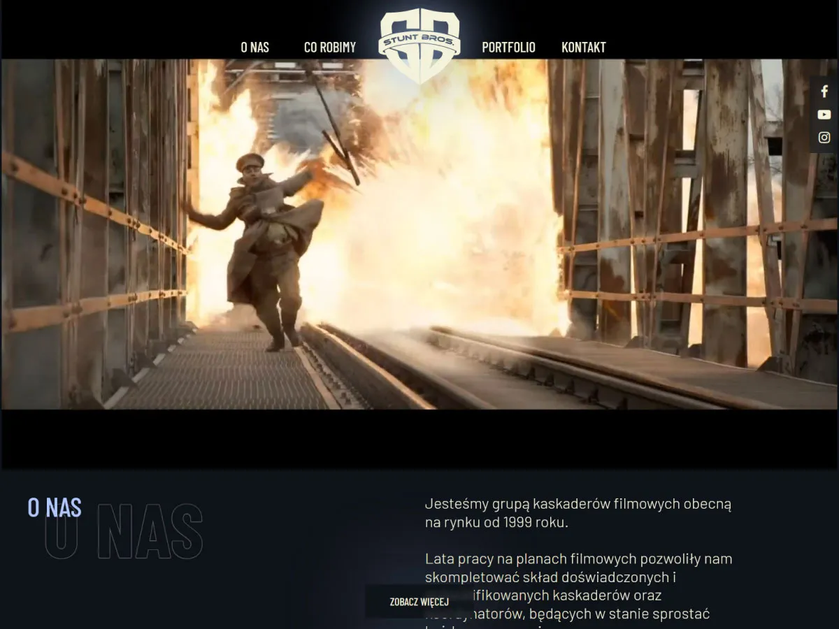 Strona jednostronna scrollowana dla wysoko utalentowanych kaskaderów filmowych z filmami i portfolio.