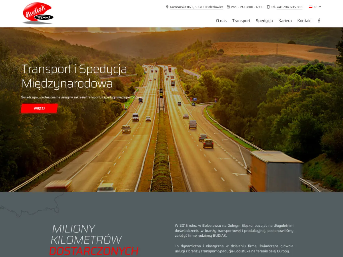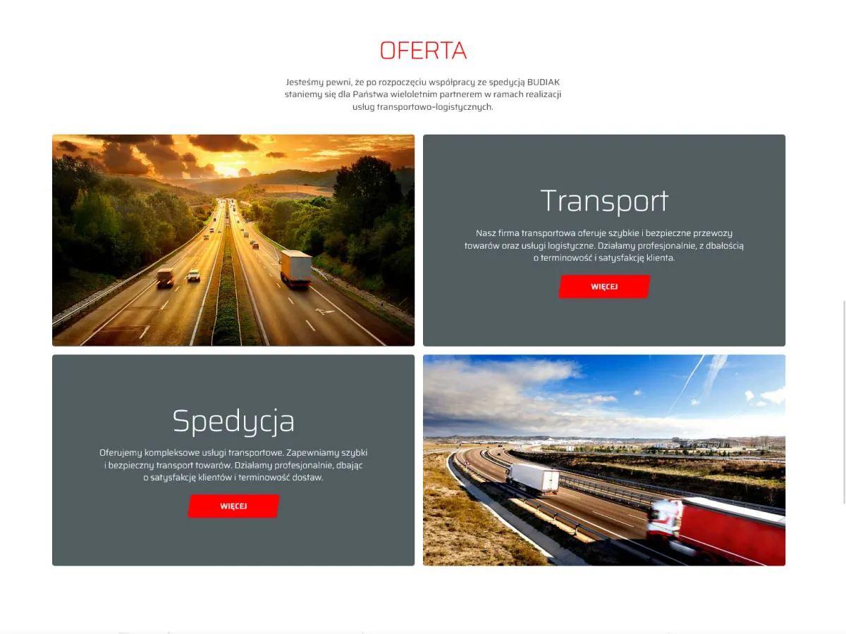 - Sekcję ofertową prezentującą usługi spedycyjne i transportowe.