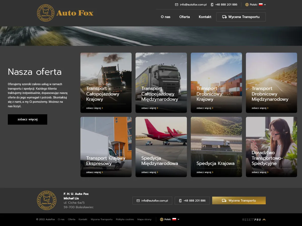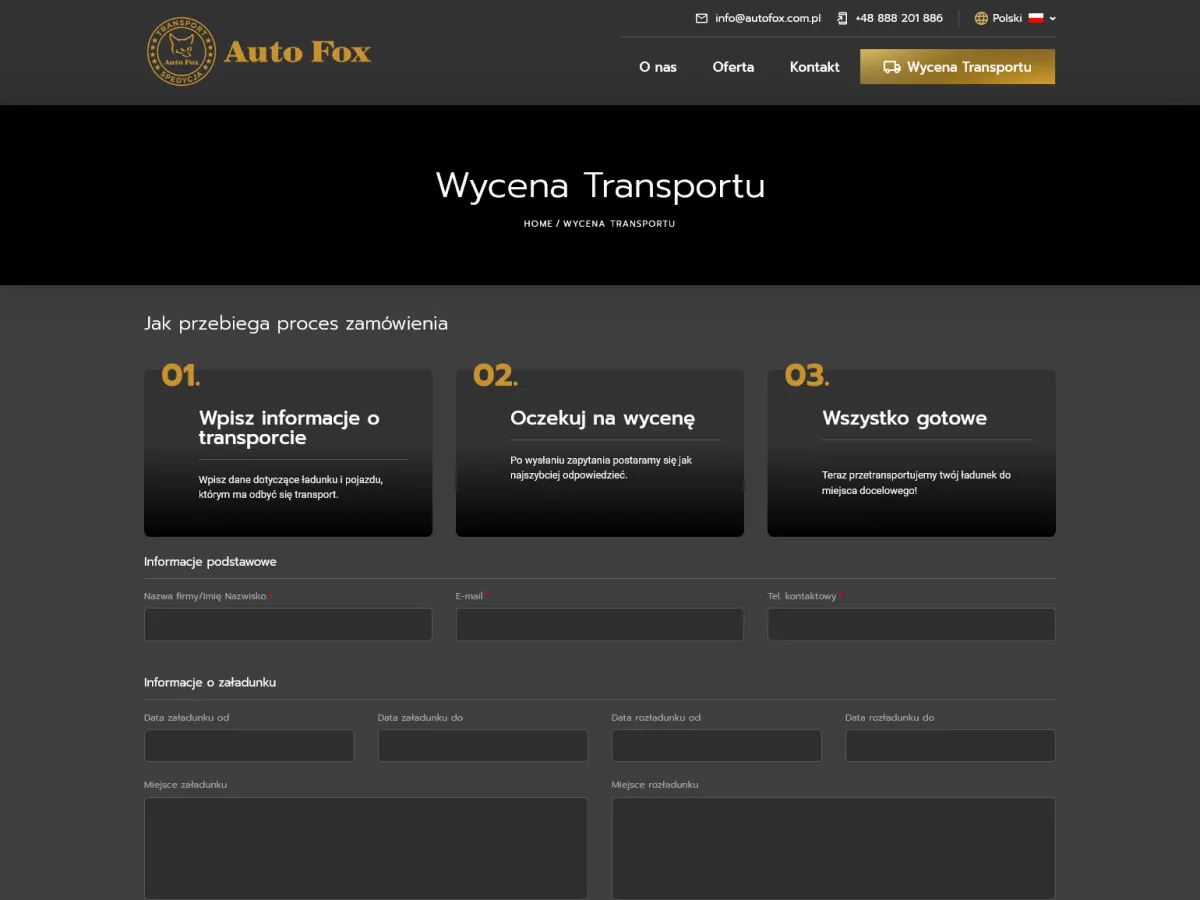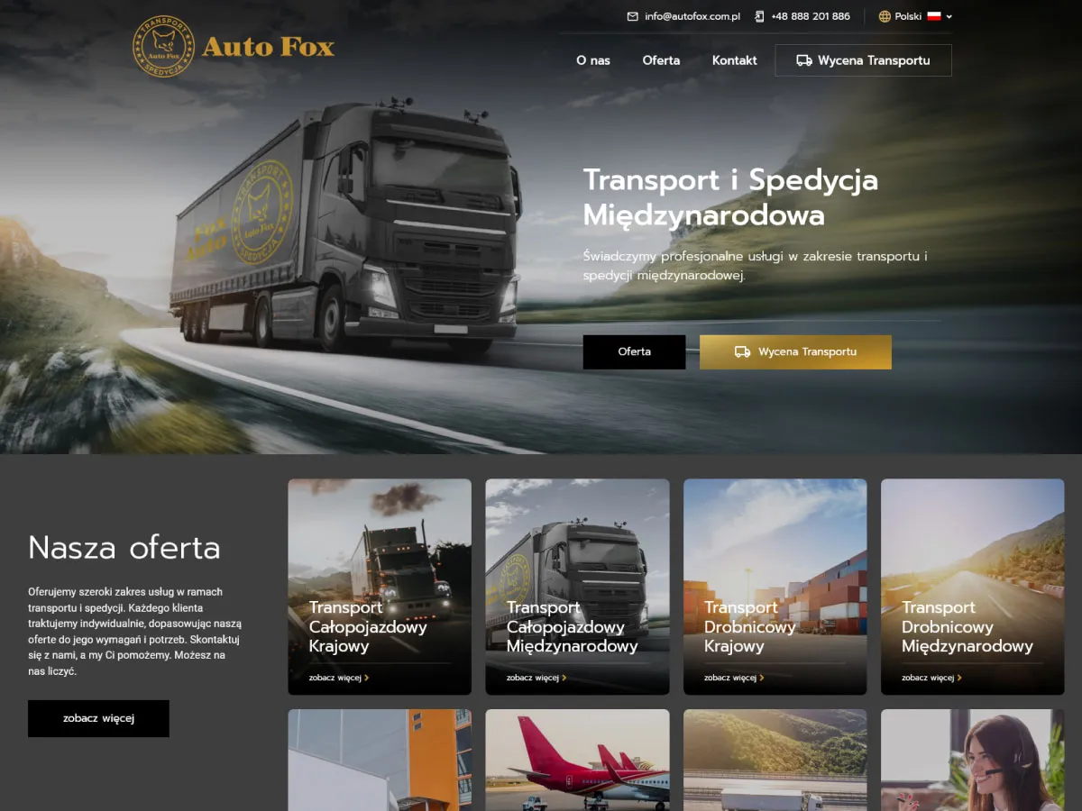 Dla naszego klienta F. H. U. Auto Fox zaprojektowaliśmy nowoczesną, wielojęzyczną stronę internetową, która odpowiada na potrzeby międzynarodowych klientów z branży transportowej.